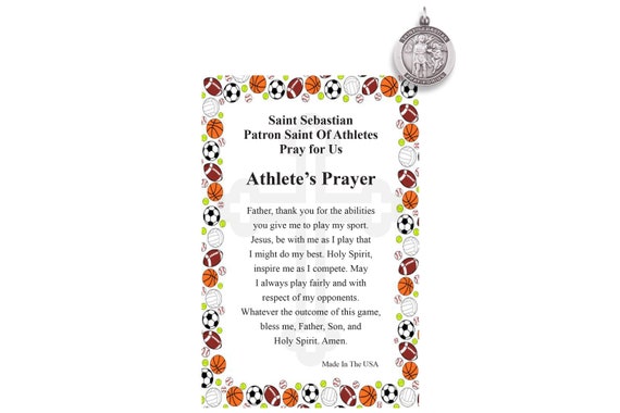 Amazon Com St Sebastian Athletes Prayer Set For Kids That Play Sports With Metal Token And Saint Holy Card Toys Games